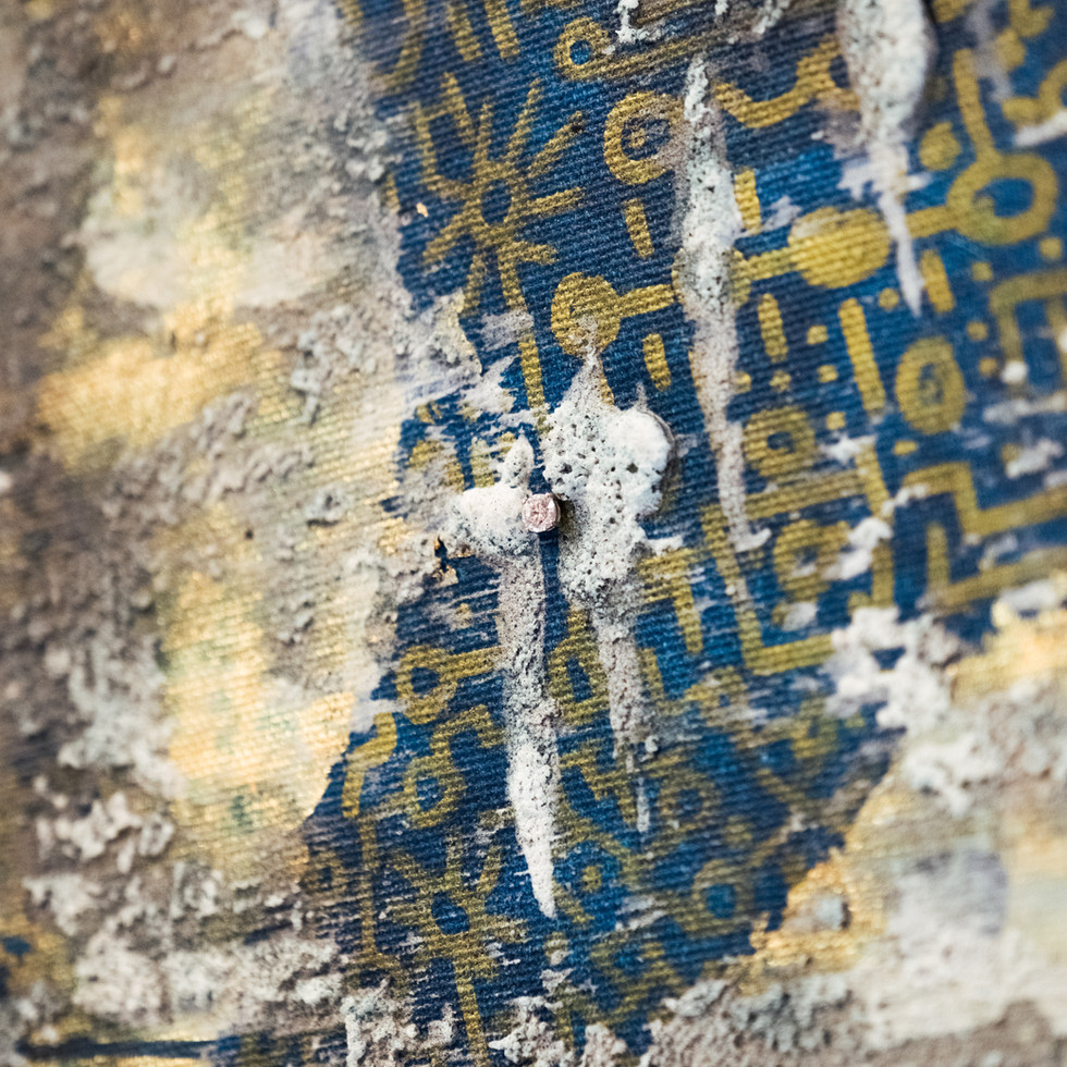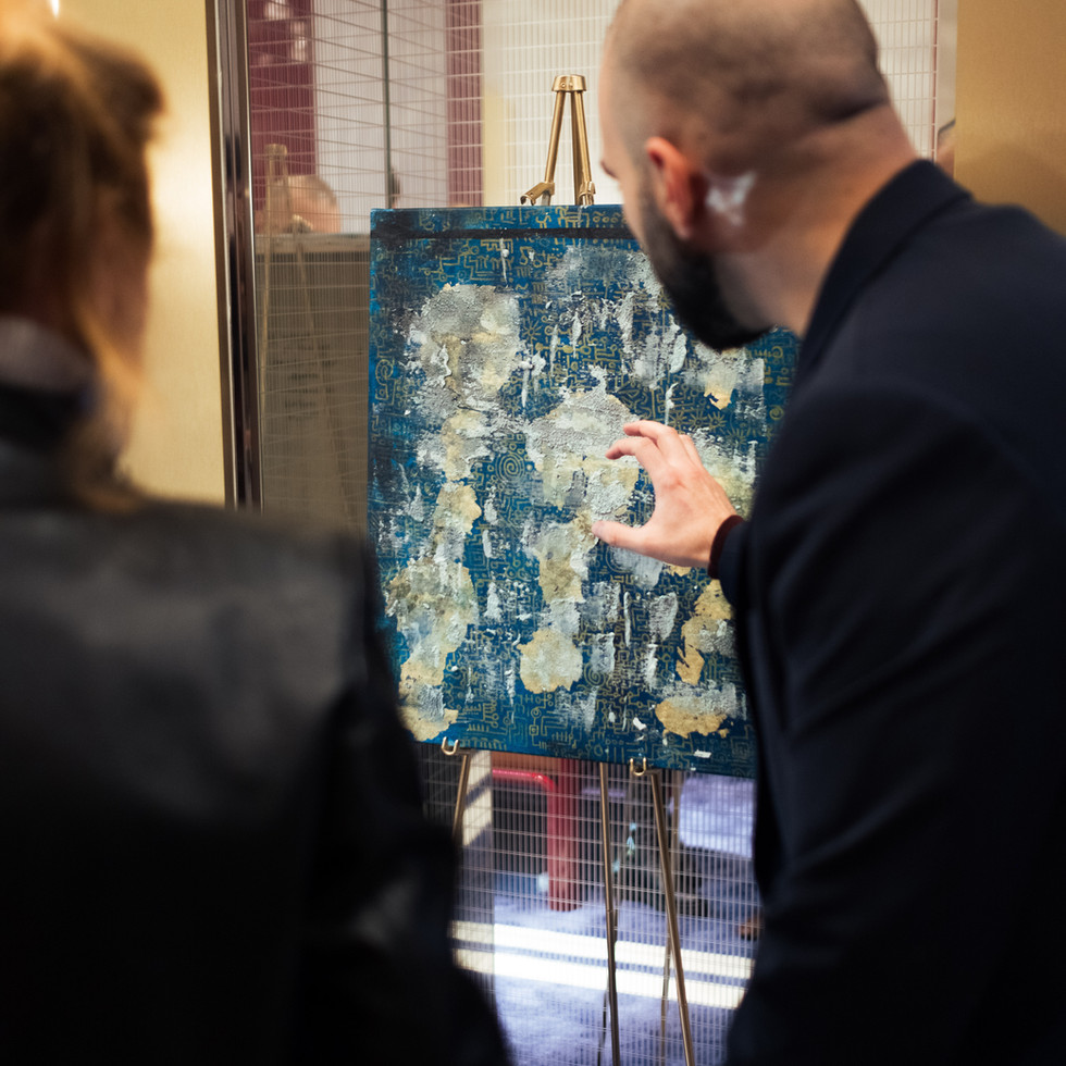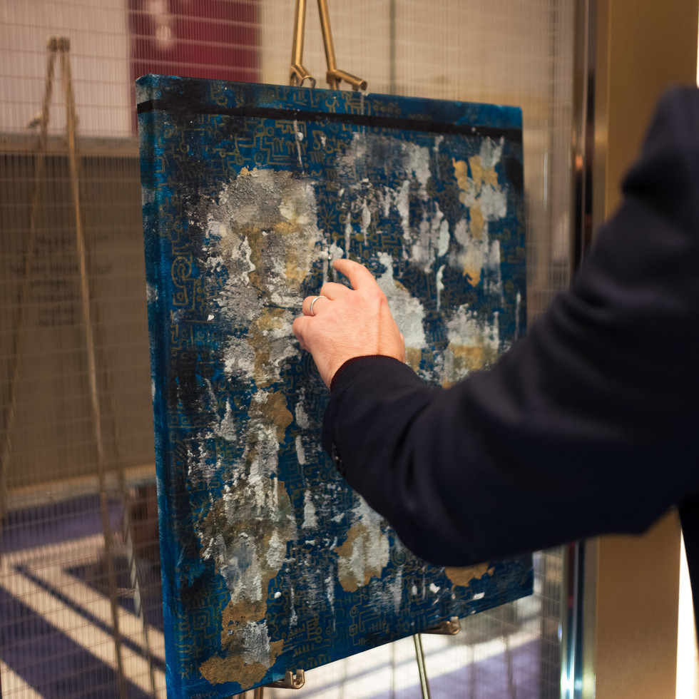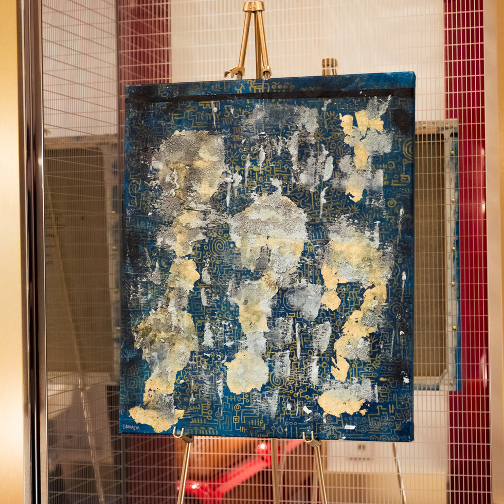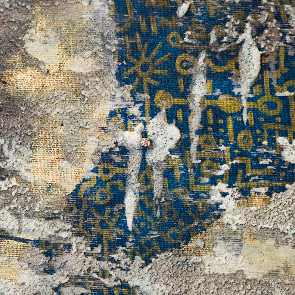 Medium: Mixed media on canvas with a 0.30 ct colorless natural round brilliant diamond set, GIA certified